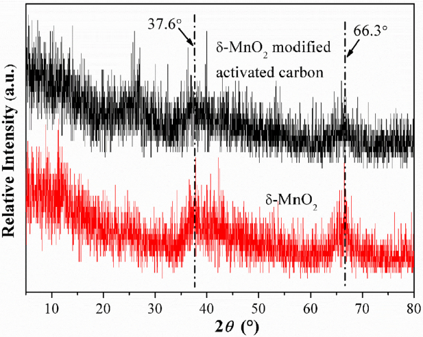 图5 δ-MnO2改性前后活性炭的p-XRD图谱