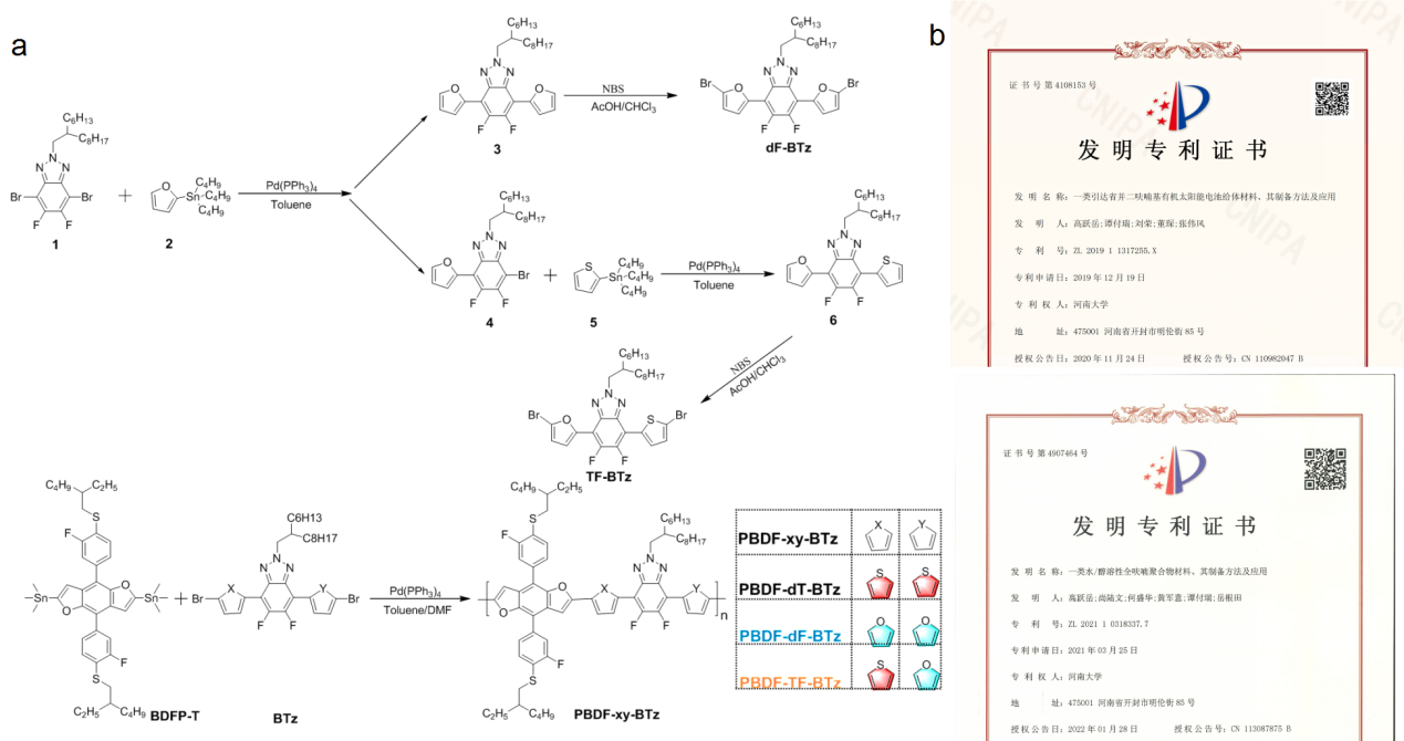 图2. a分子合成路径与b获得的部分专利