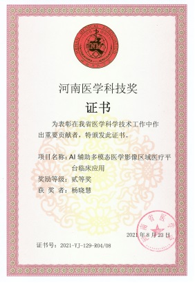 图4. AI辅助多模态医学影像协同诊疗平台及荣获省医学科技二等奖.