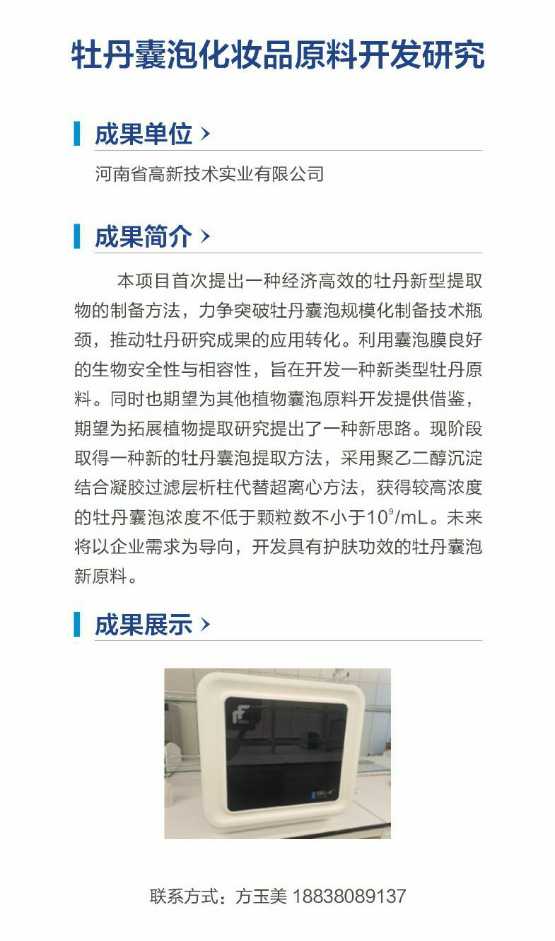 牡丹囊泡化妆品原料开发研究(河南省高新技术实业有限公司)