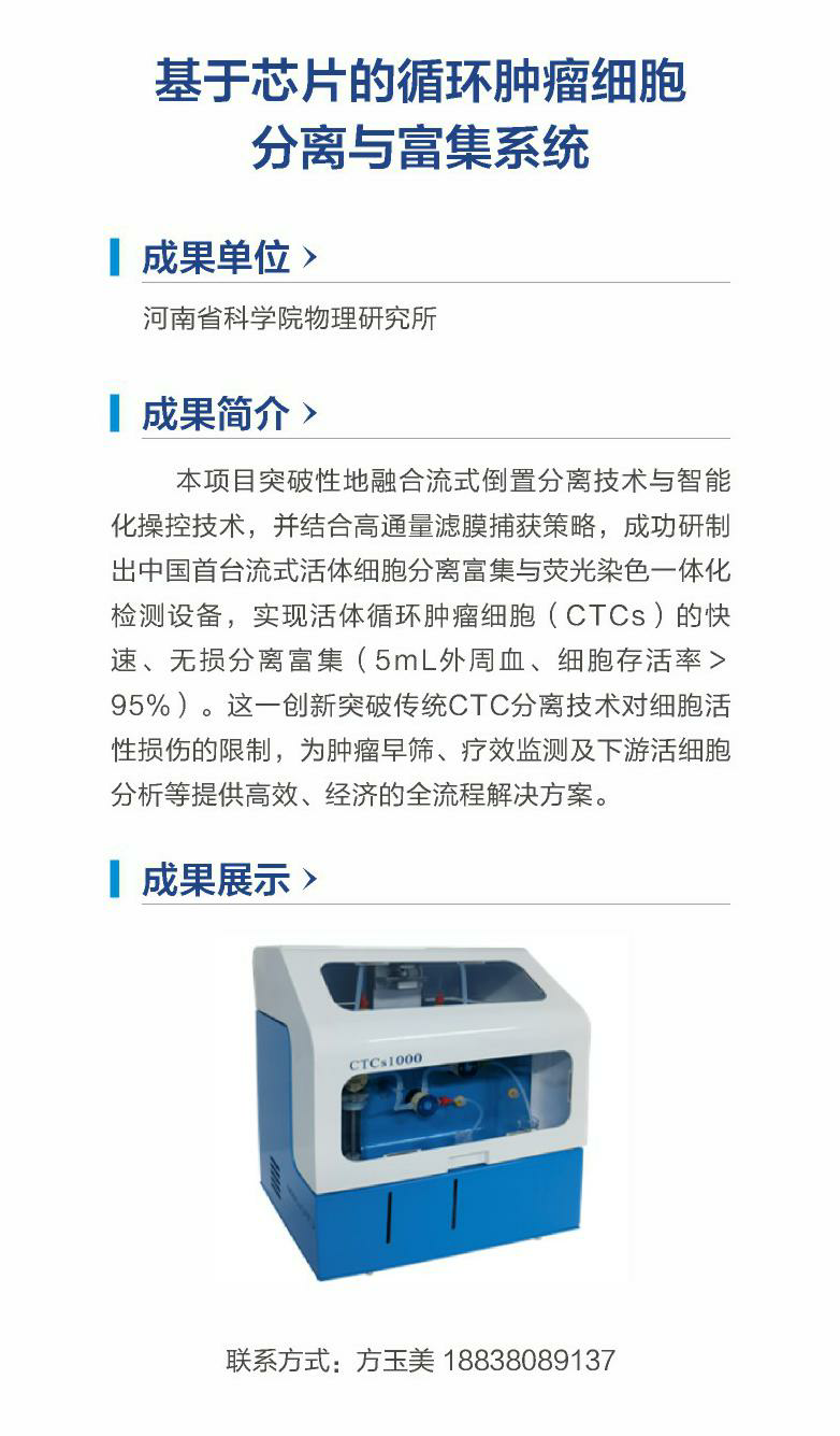 基于芯片的循环肿瘤细胞分离与富集系统(河南省科学院物理研究所)