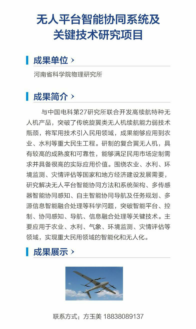 无人平台智能协同系统及关键技术研究项目(河南省科学院物理研究所)