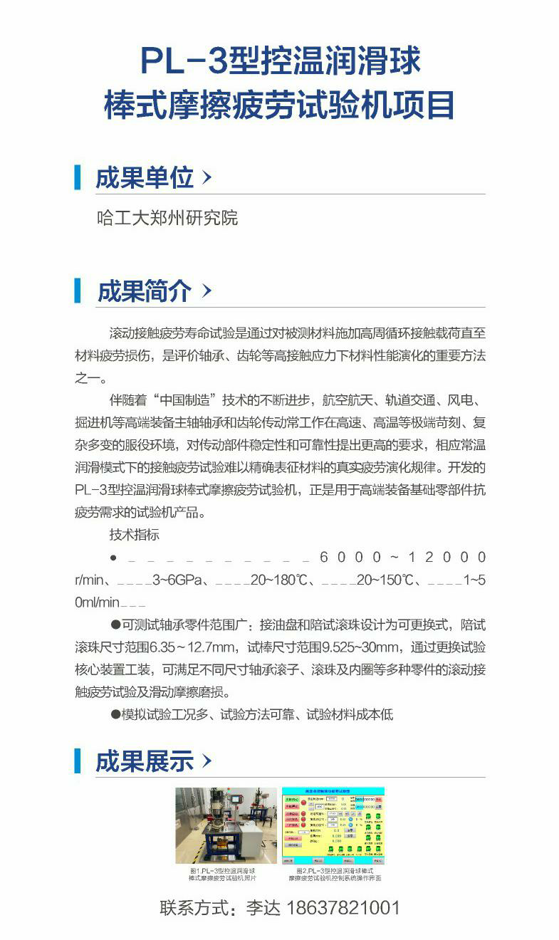 PL-3型控温润滑球棒式摩擦疲劳试验机项目(哈工大郑州研究院)