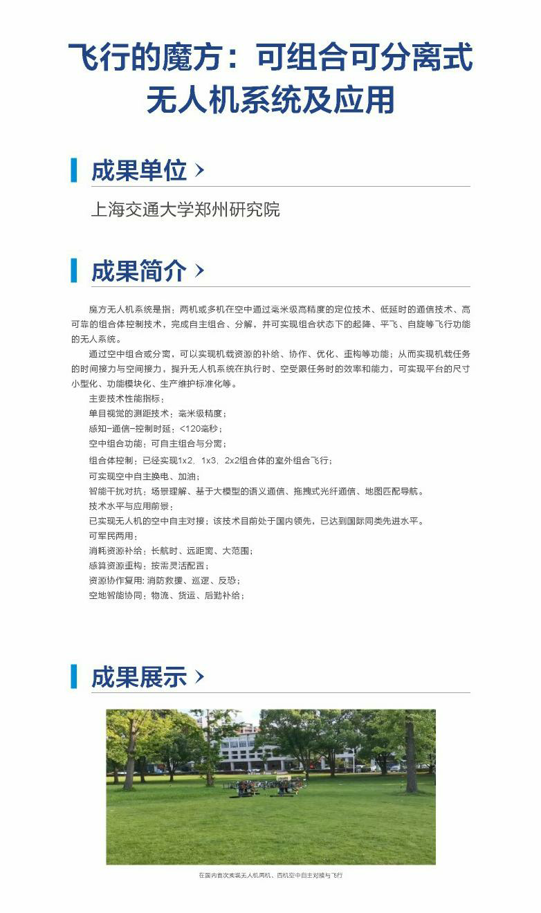 飞行的魔方:可组合可分离式无人机系统及应用(上海交通大学郑州研究院)